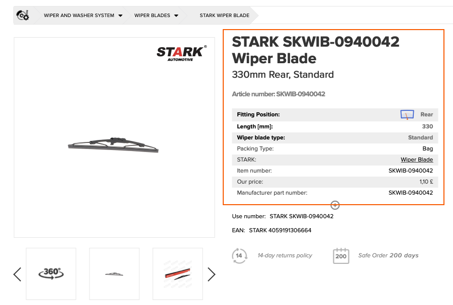 The product descriptions on our website come from the TecDoc catalogue. The product description is extremely important when selecting an item. It gives information about product characteristics that are relevant for the installation and operation of the part.