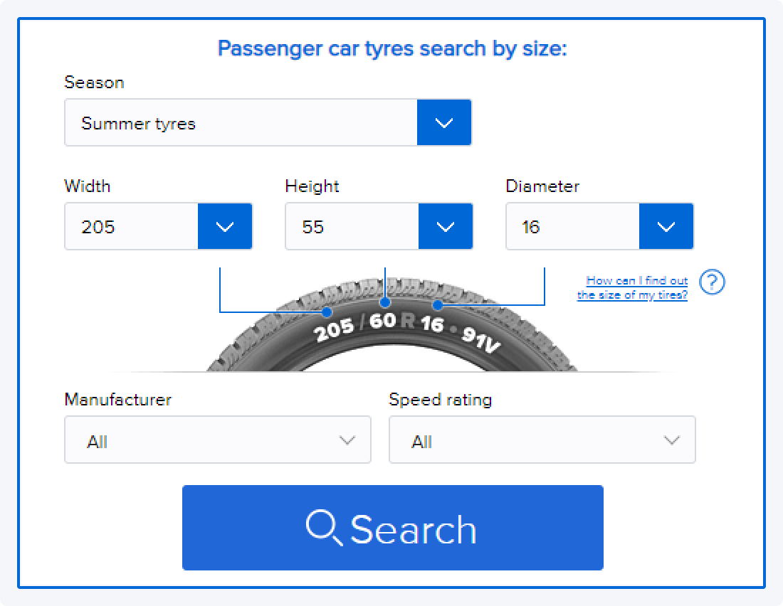 For example: 205/55 R16 91V.