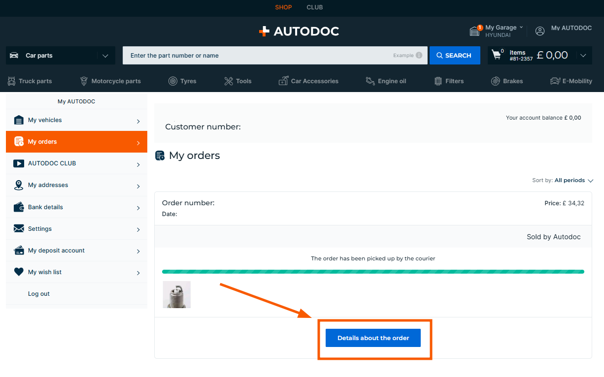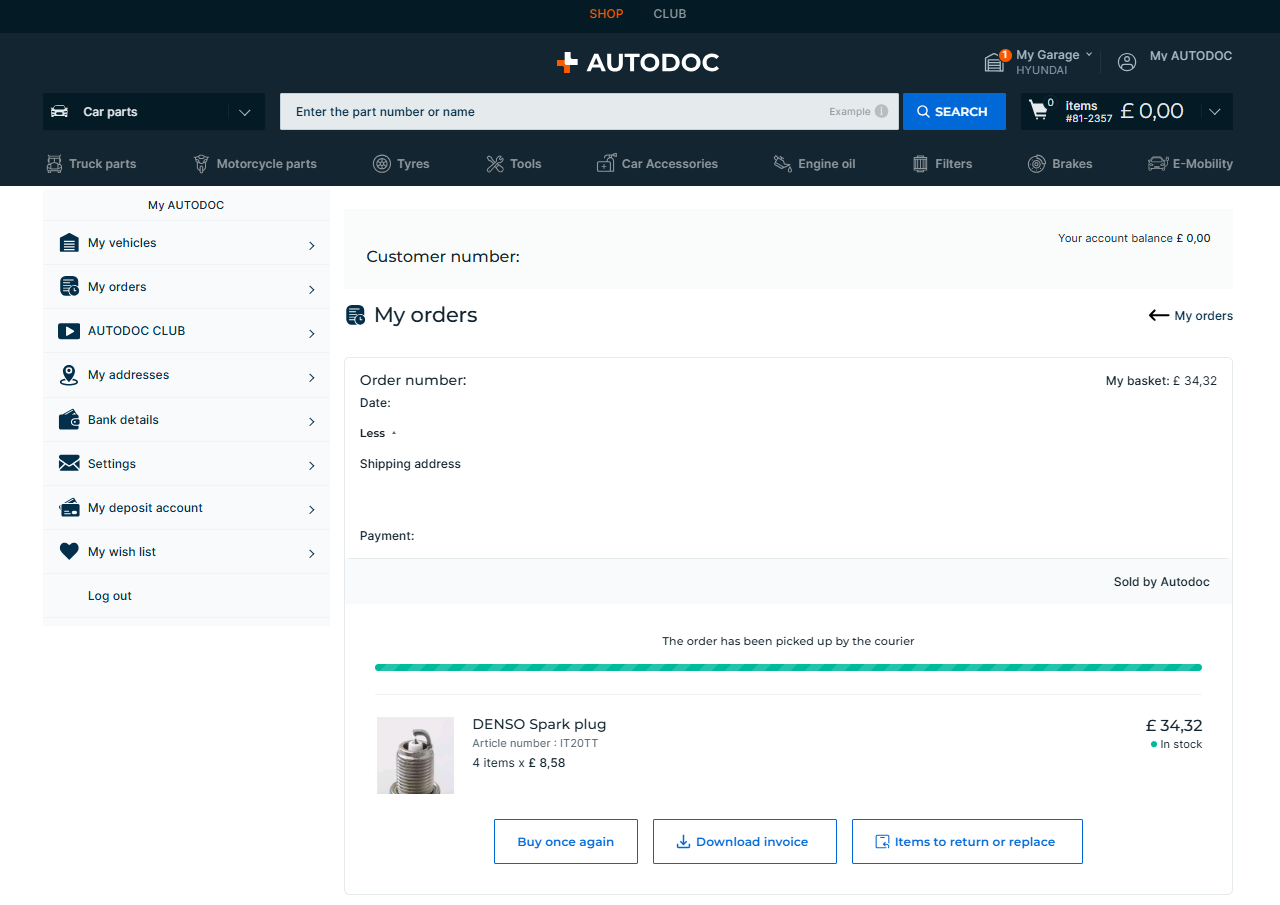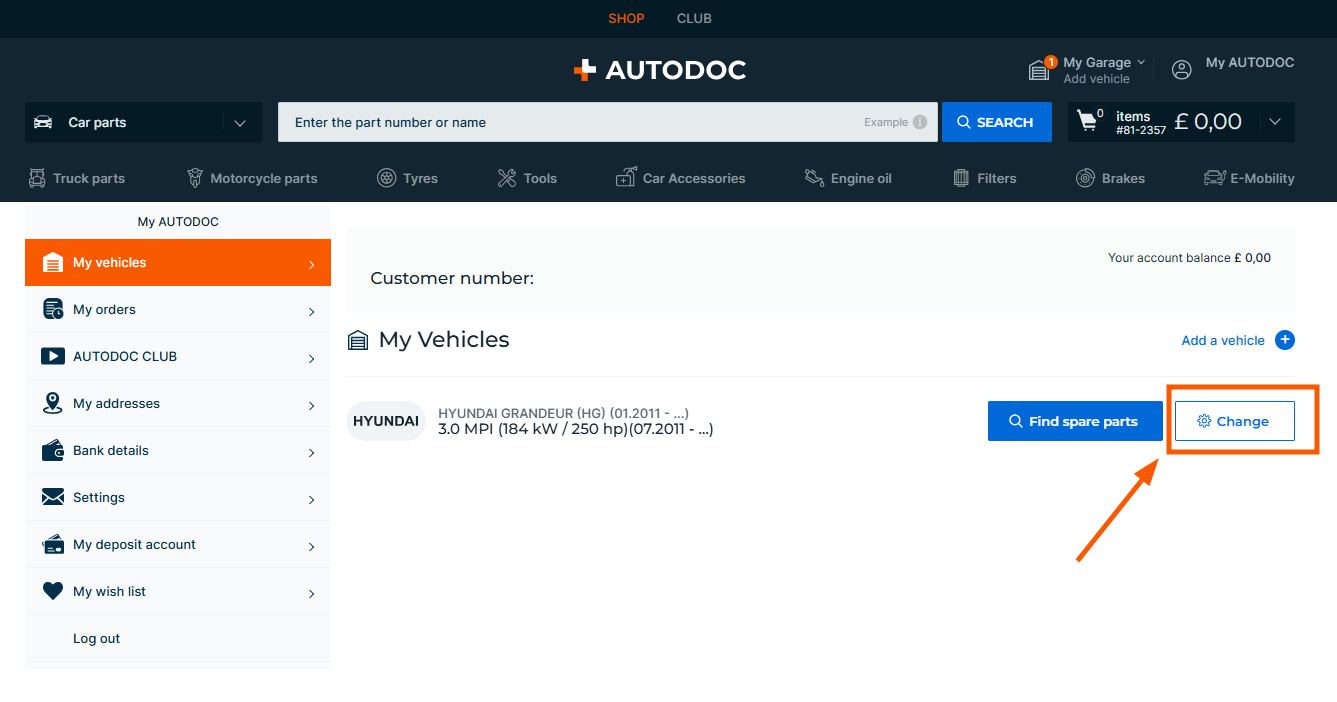 The My vehicles section allows you to quickly go to the spare parts catalogue for the vehicles you have already searched for and purchased parts for in our online shop.