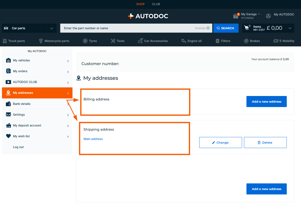 Note that the last address added by you is automatically added to your basket when you check out. You do not have to enter it manually.