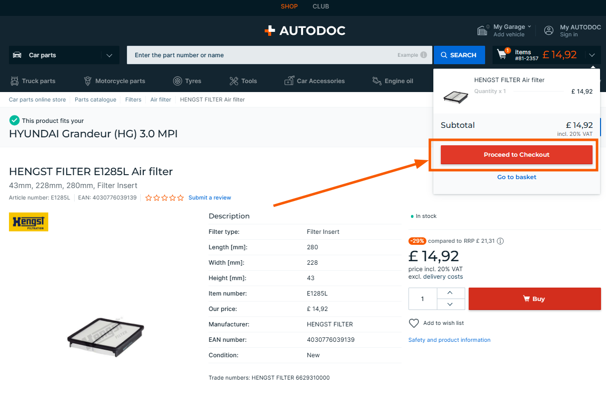 - Add items to your basket. Click on Proceed to checkout. Enter the data required for registration.