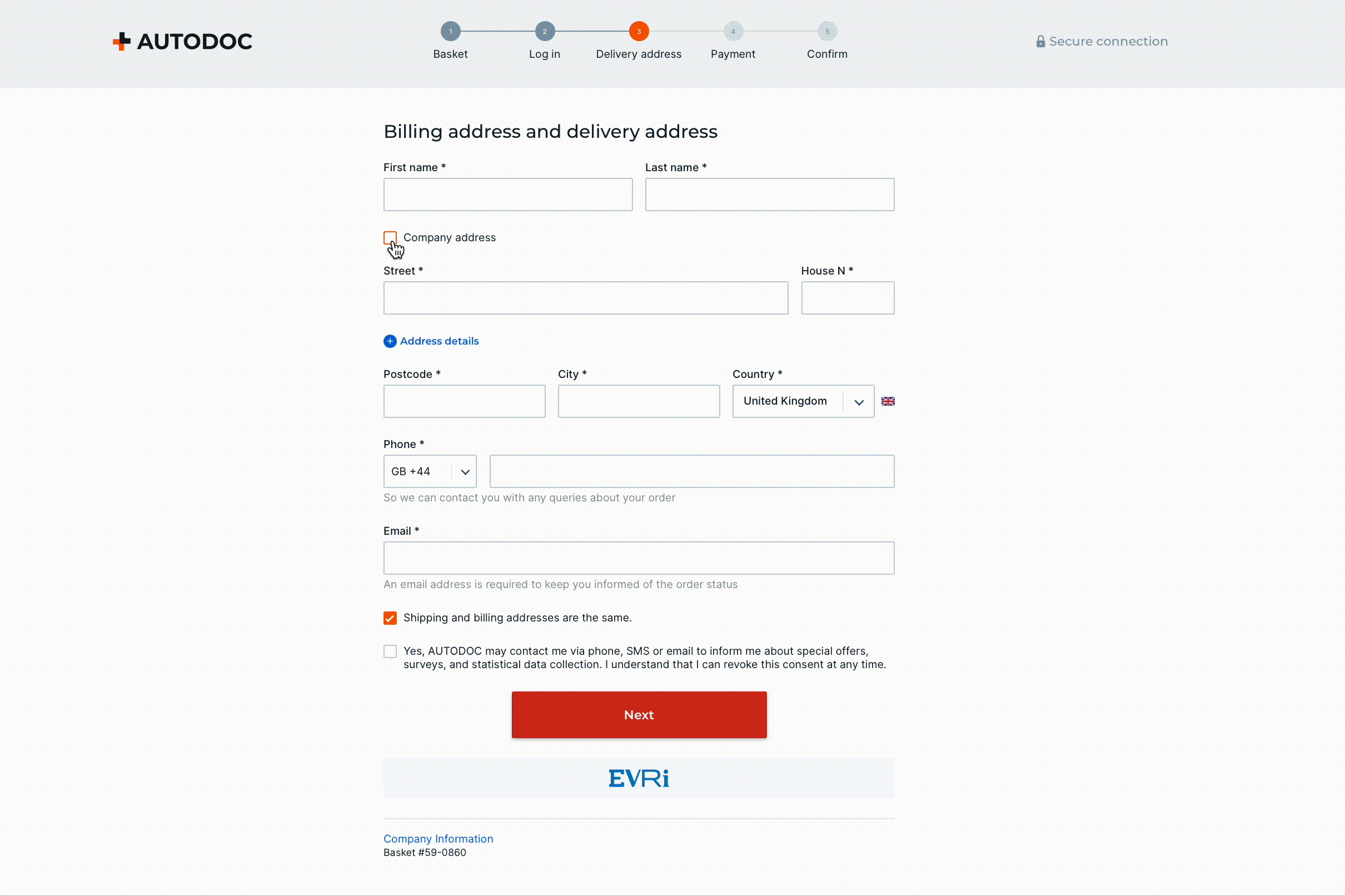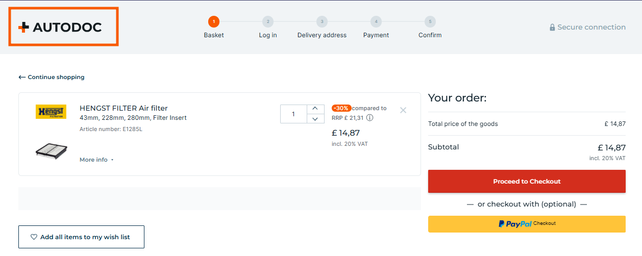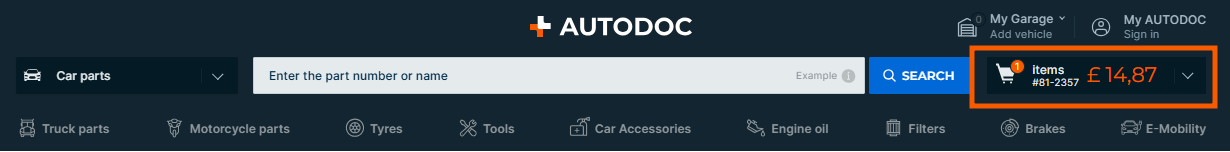 - click on the AUTODOC logo to continue shopping