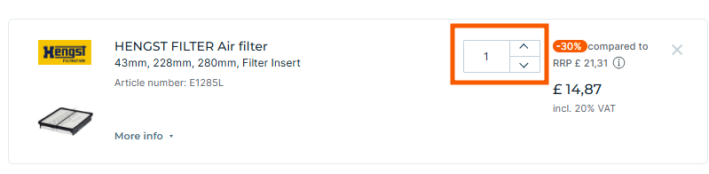 The items are automatically added in pairs for such categories as brake discs, brake drums, some shock absorbers, springs, suspensions, and some other products.
